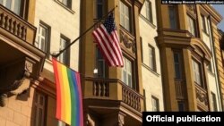 Посольство США в Москве разместило на фасаде своего здания радужный флаг. В сообщении дипмиссии говорится, что так чествуется флаг гордости ЛГБТИ во время празднования Дня радужного флага.