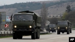 Небольшая группа украинских военных отказалась сложить оружие и принести присягу региональным про-российским властям. Теперь в Перевальном два здания базы, где находятся эти украинские солдаты, окружены дюжиной грузовиков и бронированных автомобилей с черными российскими военными номерами.