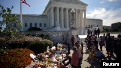 В США началось трехдневное прощание с судьей Верховного суда Рут Бейдер Гинзбург. Задрапированный флагом гроб внесли в белое мраморное здание суда, а сотни скорбящих выстроились в очередь, чтобы проститься с покойной.