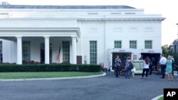 Во время августовского отпуска президента в Нью-Джерси, в Белом доме проходит плановый ремонт, в том числе – в президентском кабинете. Сотрудники Западного крыла Белого дома, которые остались в Вашингтоне, продолжают работать в старом административном здании через дорогу от Белого дома.